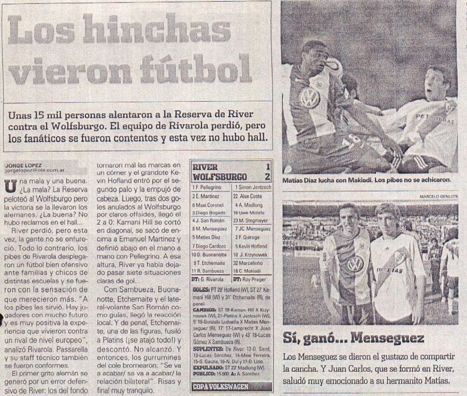 Formación River Plate: Juan Ojeda; Cristian Villagra, Danilo Gerlo,